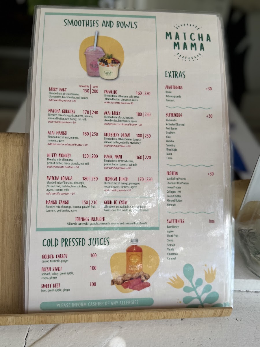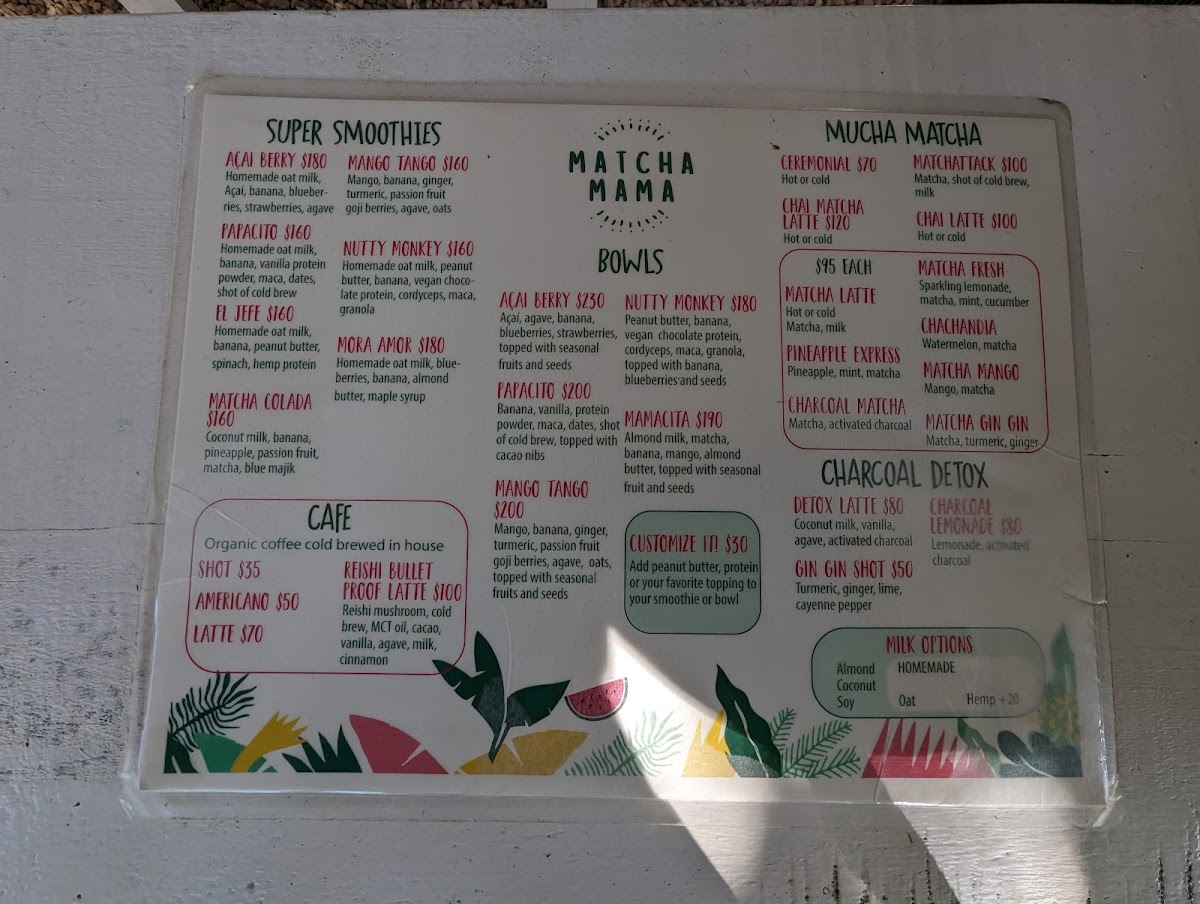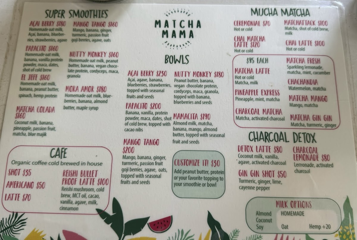 Matcha Mama Aldea Zama offers a vibrant and health-conscious menu, perfect for those seeking refreshing, wholesome meals in Tulum. The standout items include the Acai Berry Bowl, a refreshing and nutrient-packed option, and the indulgent Nutty Monkey Bowl, which combines creamy peanut butter with fresh fruit for a perfect balance of sweet and savory. For those seeking an energizing meal, the Matcha Power Bowl delivers a vibrant green tea punch, blending perfectly with the tropical fruits and superfoods. The Blueberry Dream is another delicious choice, packed with antioxidants and bursting with blueberry flavor. To complement these bowls, a variety of refreshing Smoothies are available, including classic fruit blends that serve as both a nutritious snack and a quick meal. Whether you’re in the mood for something fruity or more earthy with the matcha infusion, Matcha Mama Aldea Zama offers a menu that keeps health at the forefront without compromising on flavor.